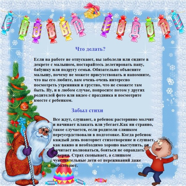 «Дед Мороз – это вера в чудо для каждого ребёнка. Но если ребёнок слишком мал или неподготовлен к встрече с Дедом Морозом, он может испугаться, заплакать и отказаться подходить к нему вообще».