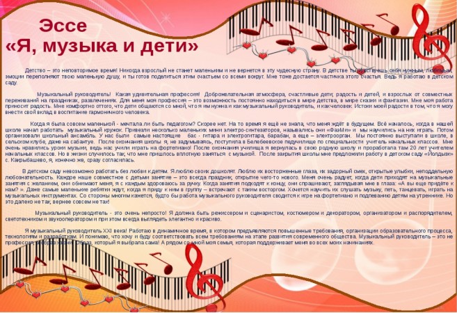 За окном утро, свет нового дня. И вот я уже спешу знакомой дорогой к детскому саду. Что день грядущий мне готовит? Какая музыка сегодня зазвучит в моей судьбе? Музыка светлой радости и фантастического счастья, как у солнечного Моцарта? Или мелодия беззвучно льющихся слез и страдающего сердца как у Глинки, а может симфония мужества, огня и победы как у Бетховена!