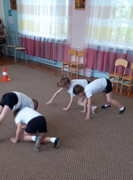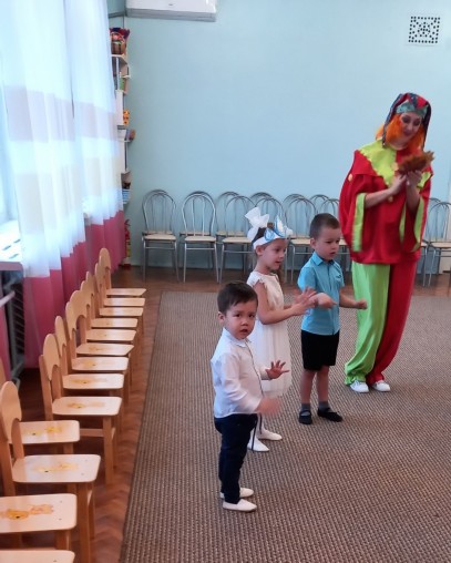 - Сидит дед, ему сто лет, а мы детки маленькие, у нас спинки пряменькие.