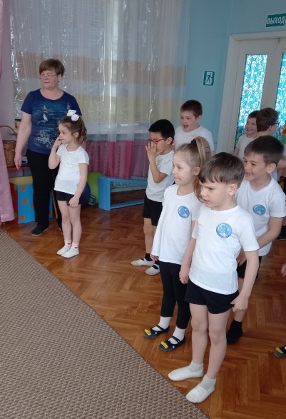 Двигательные упражнения, которые способствуют формированию правильной осанки и снятию мышечной зажатости перед пением. Например, мы можем устроить примерку «Пиджачка»: надели пиджачок (полукруговые движения плечами вперед, «пиджачок сняли» назад).